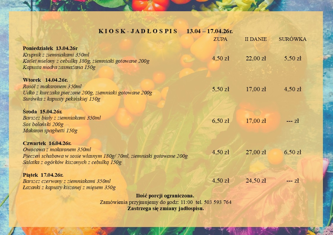 Jadłospis 13.04 – 17.04.2026