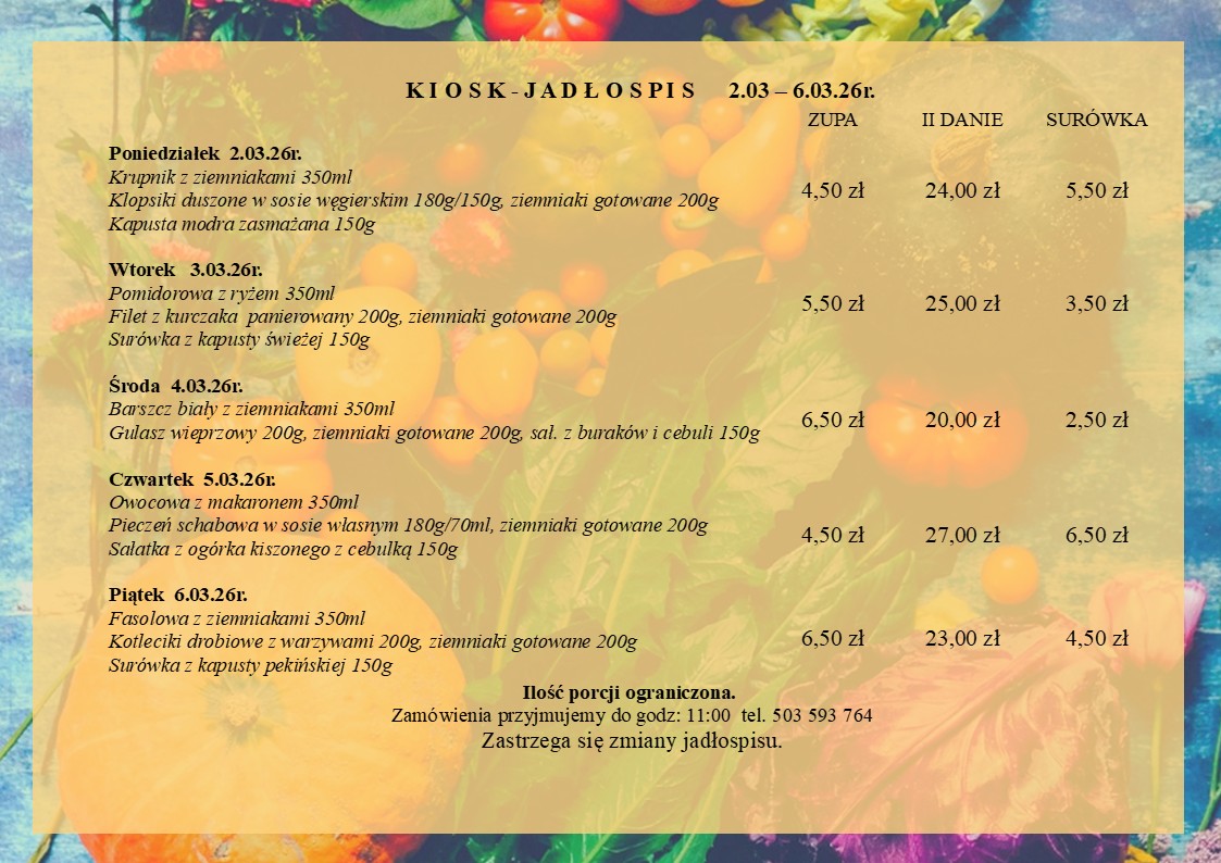 Jadłospis 2.03.2026 – 6.03.2026