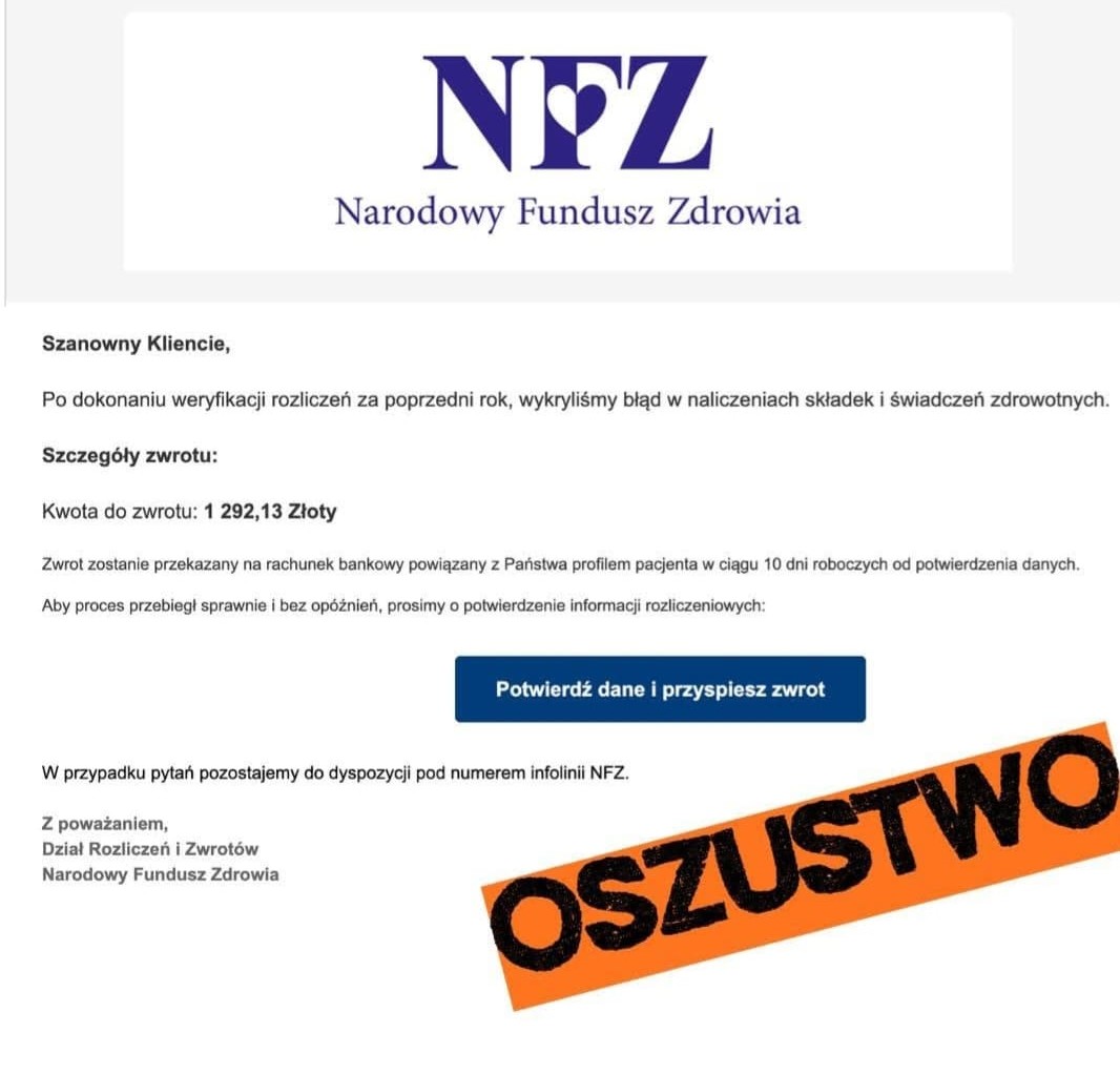 Szanowni Pacjenci proszę uważać na nowy typ oszustwa !!!